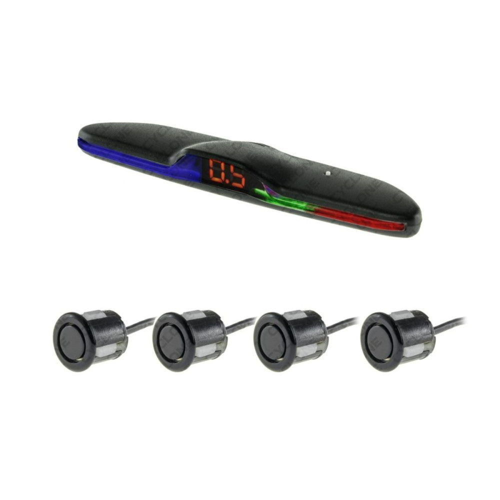 Комплектація: блок керування, LED дисплей, 4 паркувальні датчики, фреза для встановлення, комплект проводів для підключення, індивідуальна упаковка.