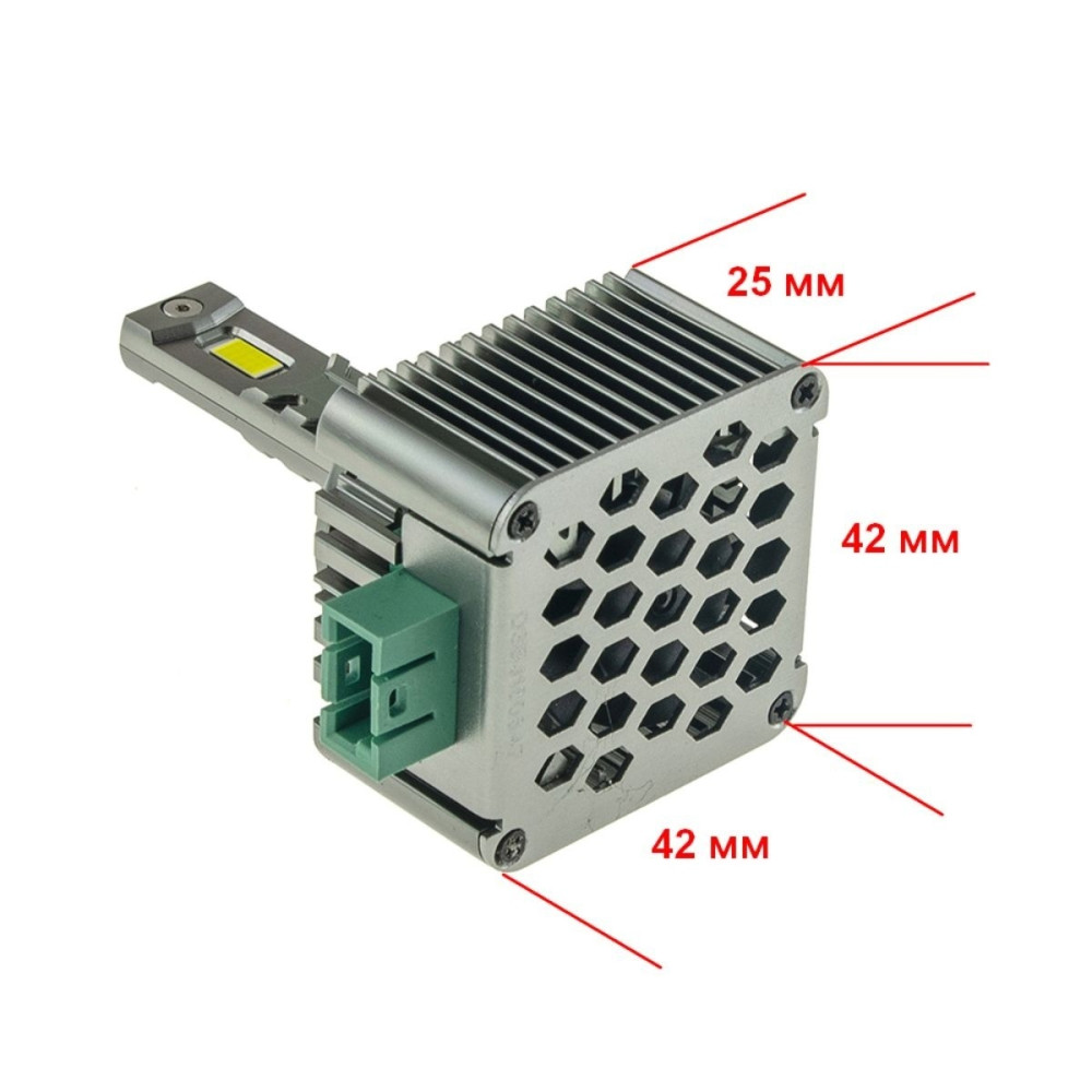 Радиатор из авиационного алюминия с большой площадью и встроенный кулер идеально отводит тепло от лампы, что позволяет использовать светодиоды на полную мощность. При этом ни сама лампа, ни штатная оптика автомобиля не перегреваются.