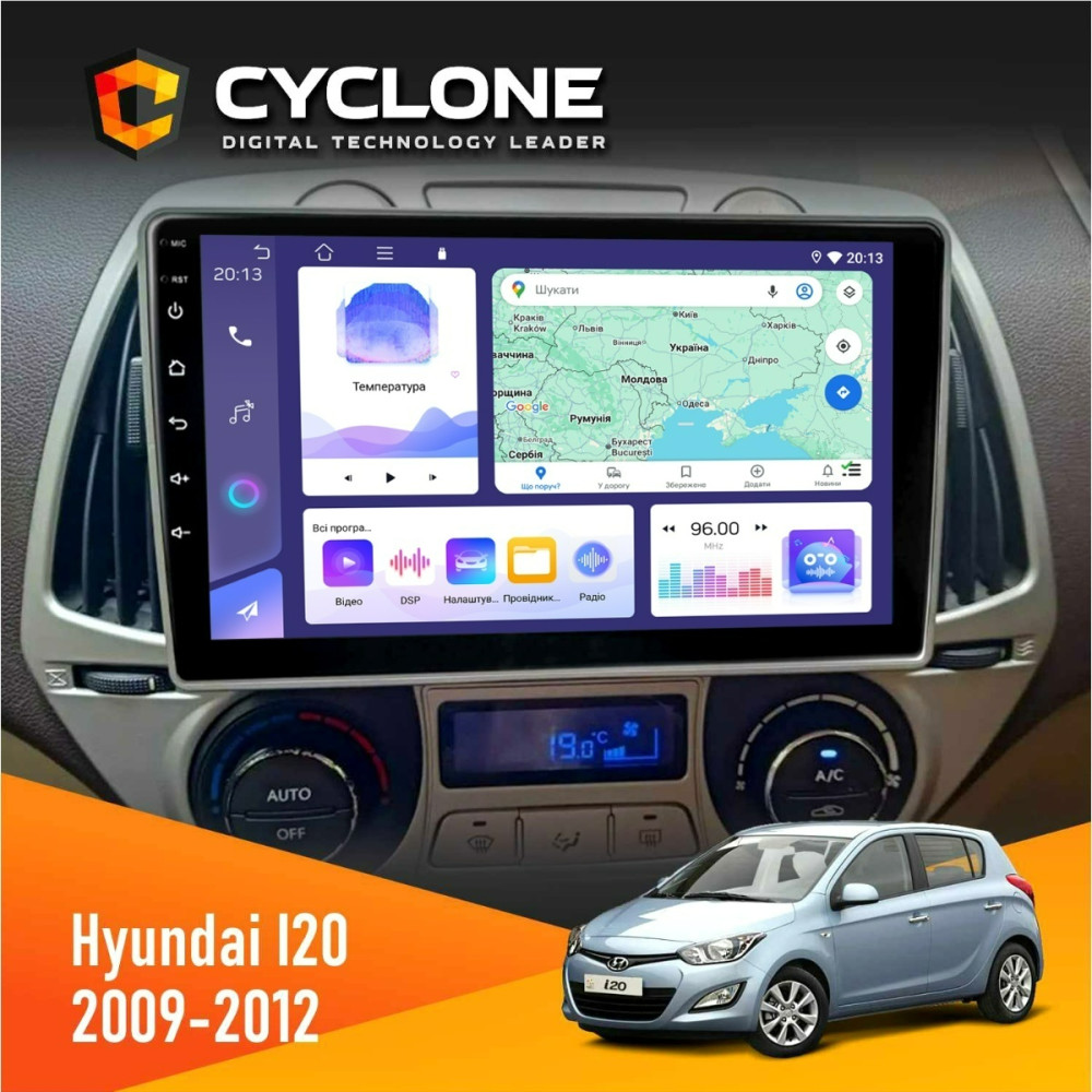 Оформить заказШтатная магнитола Hyundai I20 2009-2012 Climate Cyclone C9008 4x64, DSP