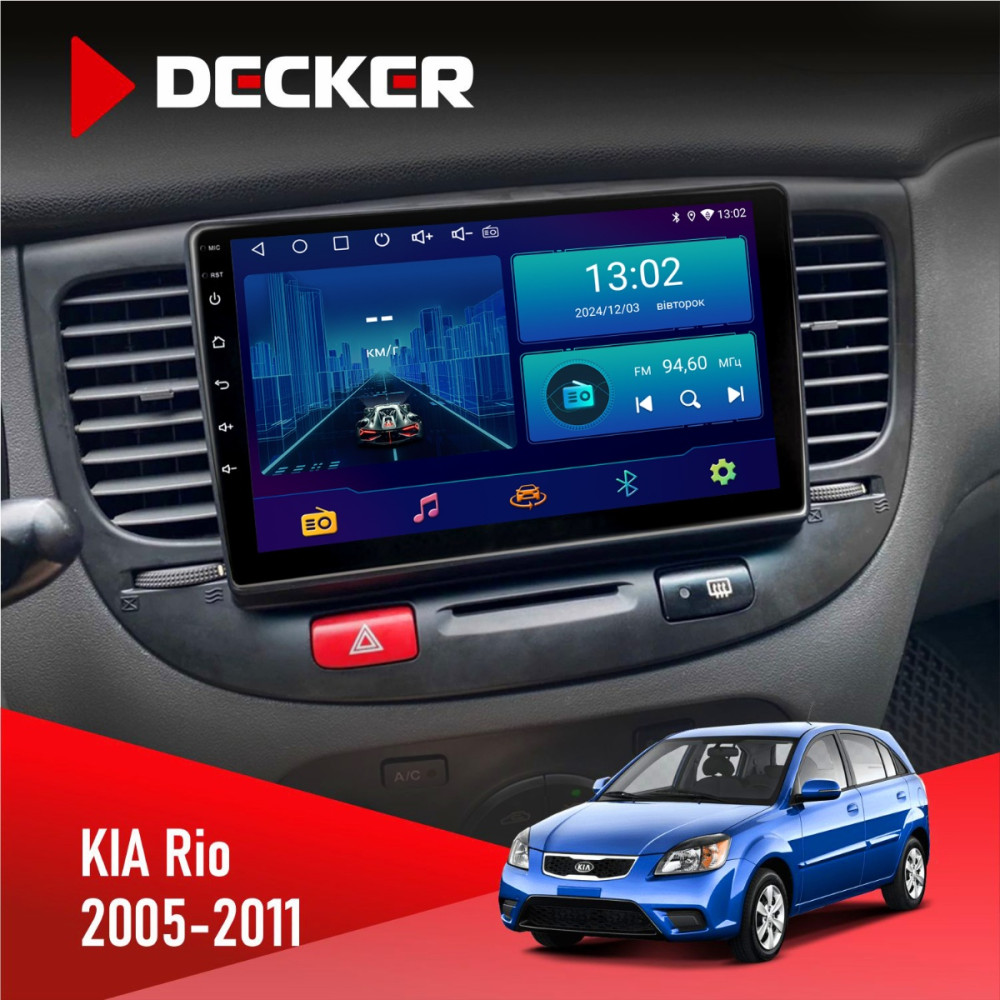 Оформить заказШтатная магнитола KIA Rio (JB) 2005-2011 Black Decker D9001 4x64, DSP