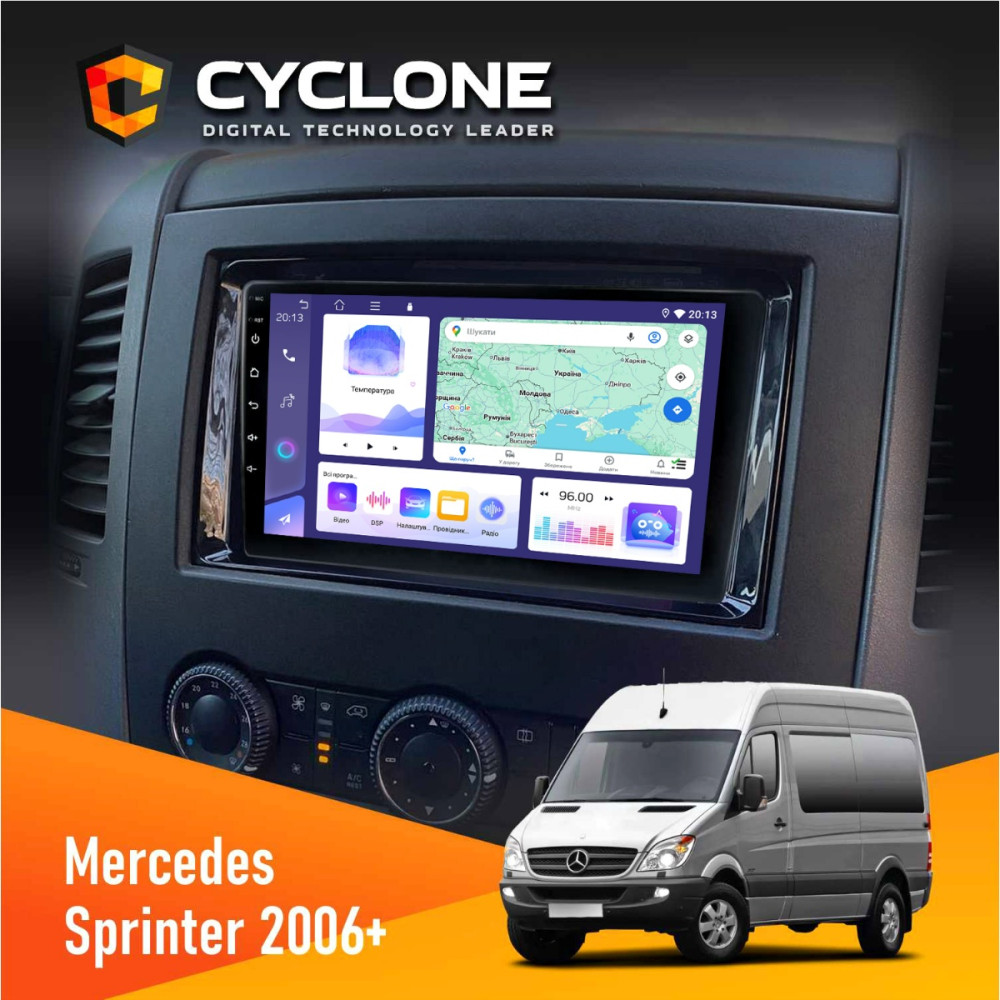 Оформить заказШтатная магнитола Mercedes-Benz Sprinter (W906) 2006+ Cyclone C9008 4x64, DSP