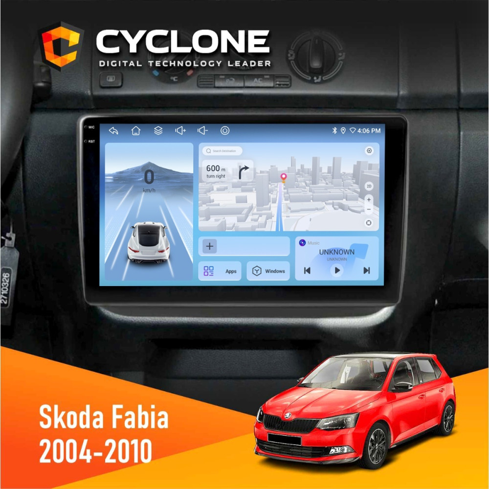 Оформить заказШтатная магнитола Skoda Fabia 2004-2010 Cyclone C10005 4x64, 4G, DSP, 2k