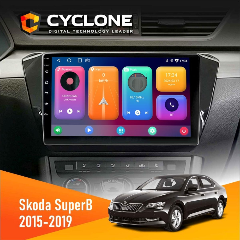 Штатная магнитола Skoda SuperB 2015-2019 Cyclone C10001 2x32, НФ-00004480, Штатные головные устройства