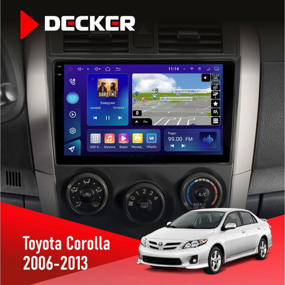Оформить заказШтатная магнитола Toyota Corolla 2006-2013 Decker D9005 4x64, DSP, 360, 4G, 2k