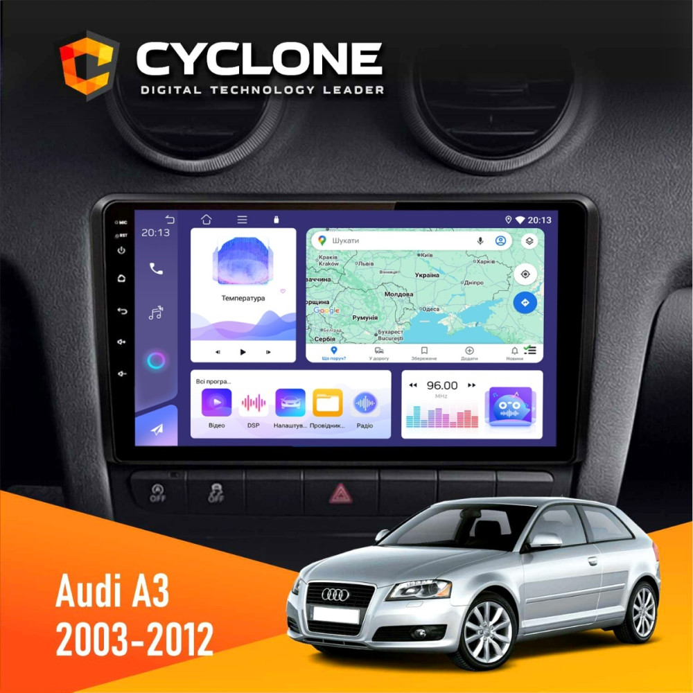 Зробити замовленняШтатна магнітола Audi A3 2003-2012 Cyclone C9-008 4x64, DSP