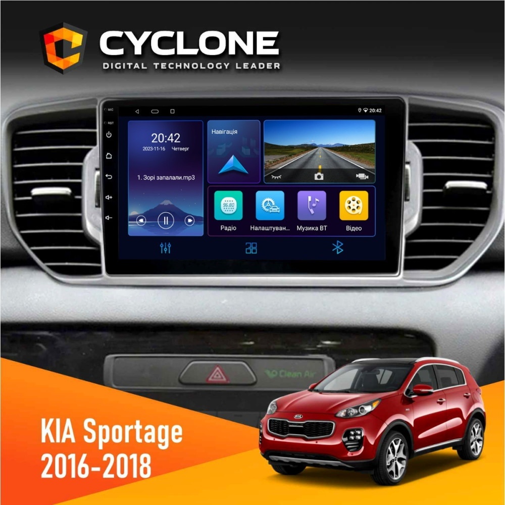 Зробити замовленняШтатна магнітола Kia Sportage 4 QL 2016-2018 CAN Cyclone C9006 4x64, DSP, DVR